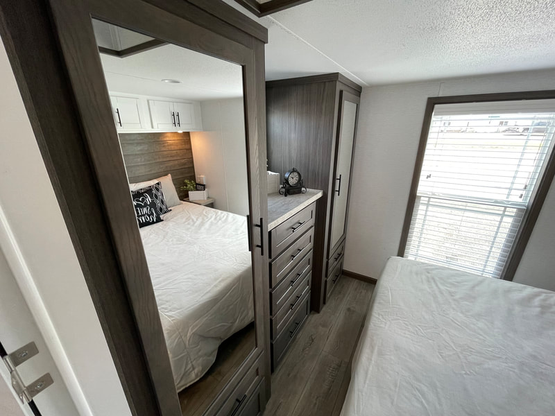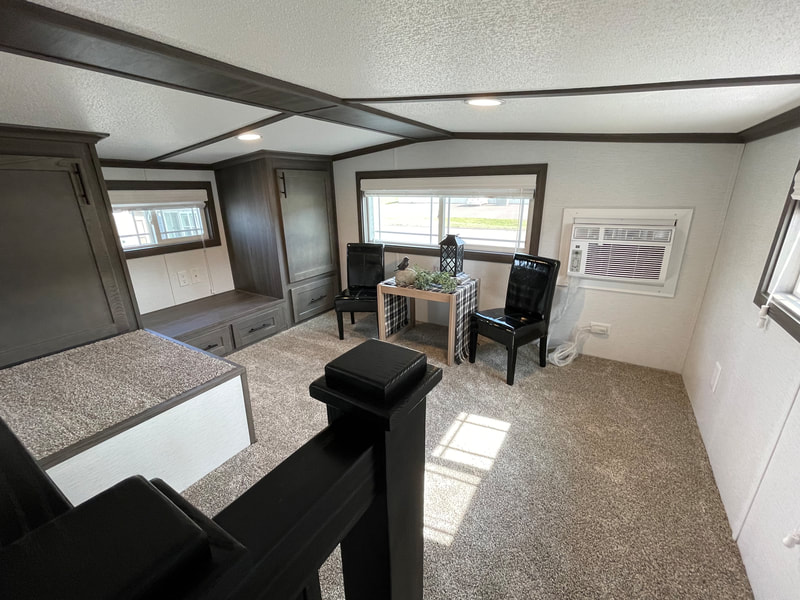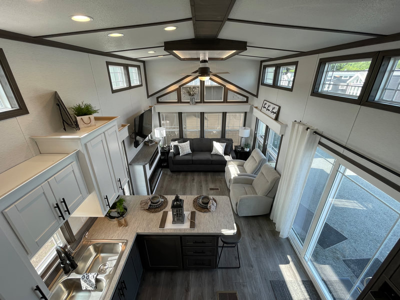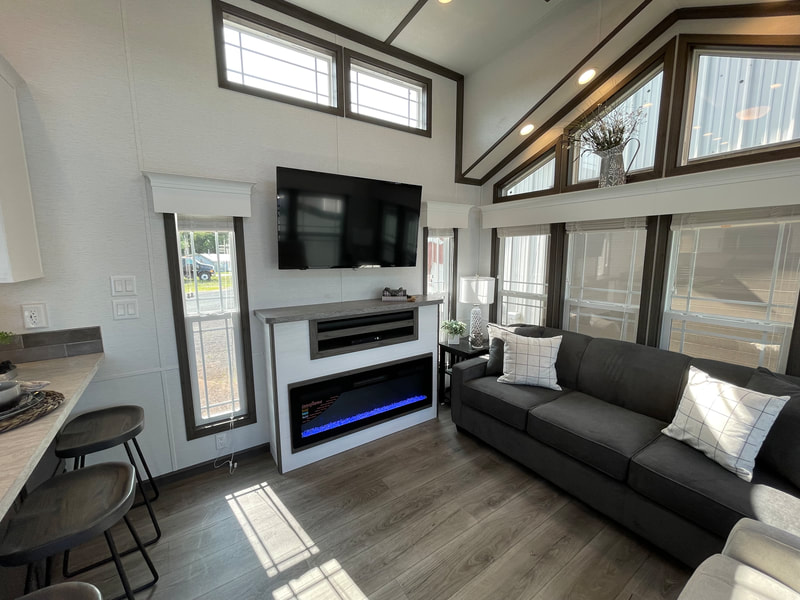 Features: Double loft, residential windows with grids, upgrade metal roof, upgrade insulation, upgrade furnace, upgrade siding, central ac, loft ac, fireplace, 50" TV, queen hide-a-bed couch, 2 recliners, wood valances, upgrade fan box, focal wall in bedroom, upgrade slate appliances, lots of storage and more...